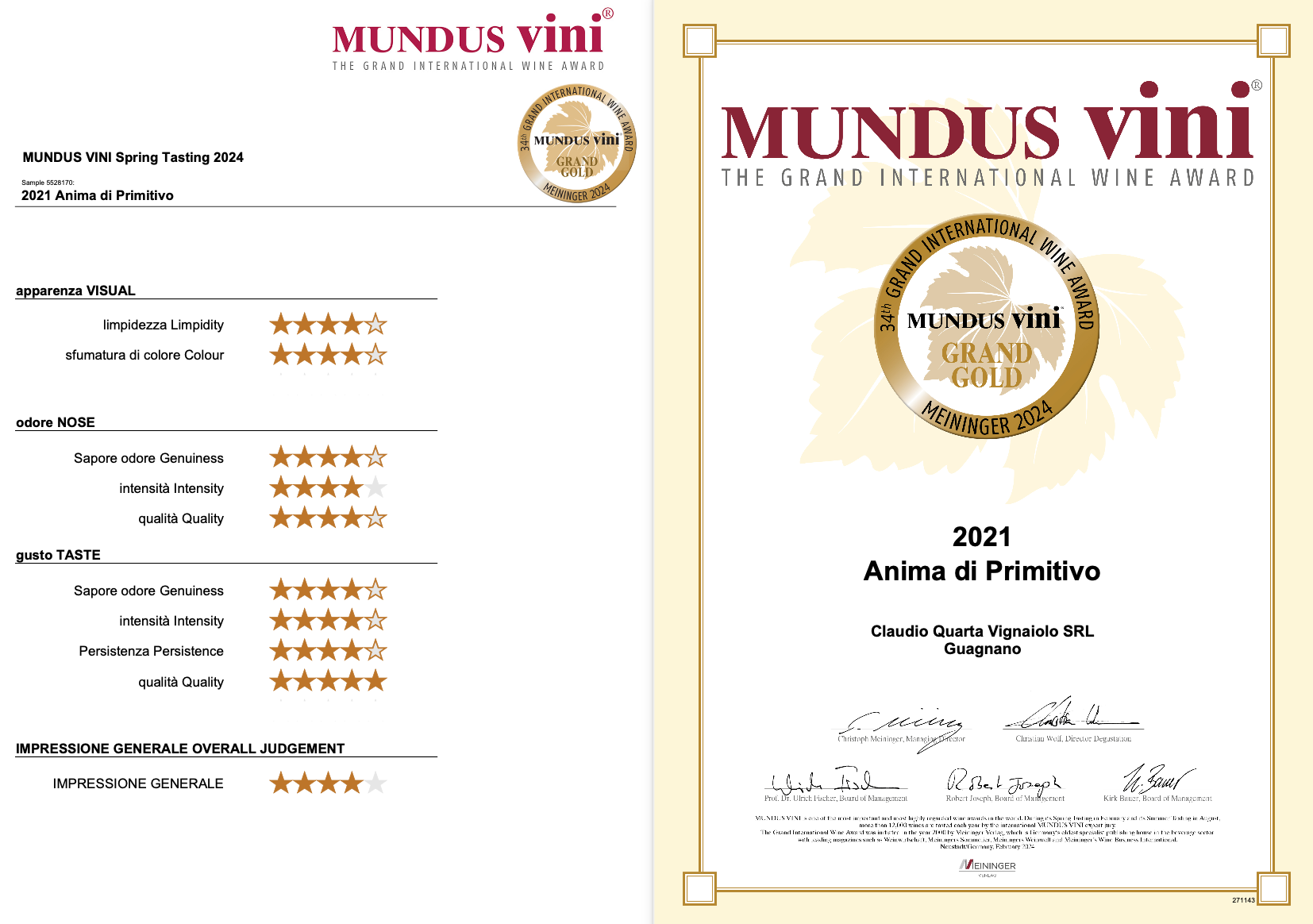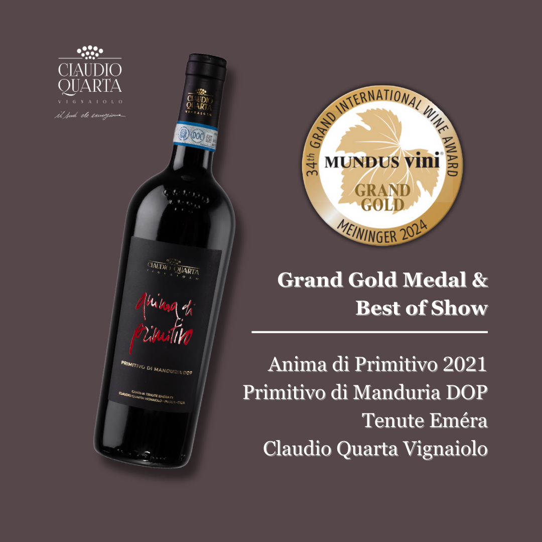 Grand Gold Medal & Best of Show at its debut for Anima di Primitivo.