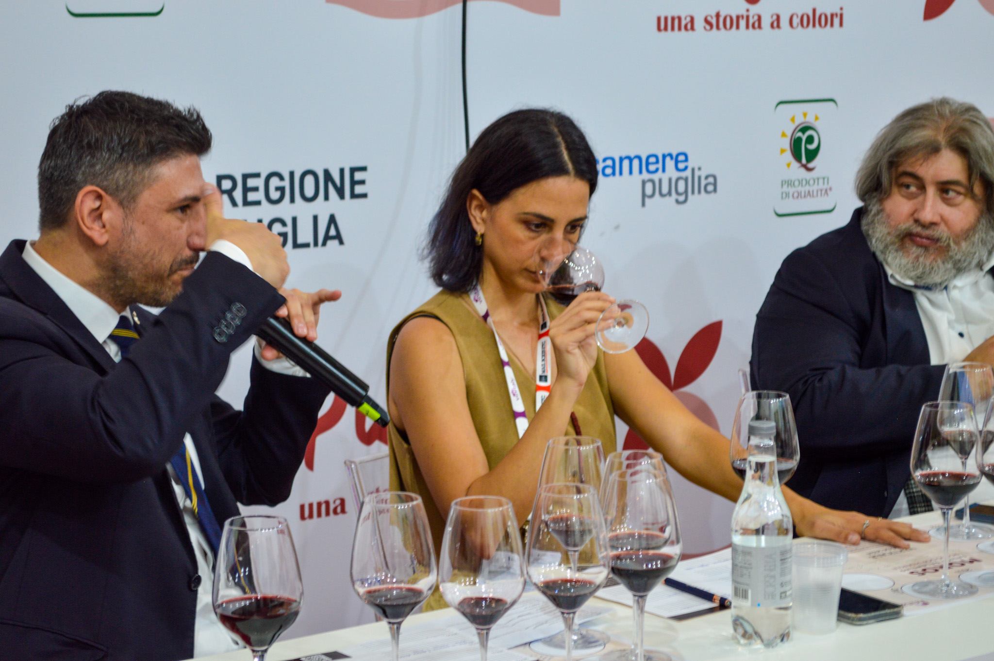 Moros reaffirmed its role as a protagonist of the denomination, acclaimed by international competitions and finally tasted with a Vertical perspective. The tasting was masterfully conducted by the renowned journalist Mauro Giacomo Bertolli, accompanied by the first sommelier of Puglia, Carmine Galasso, and the producers Alessandra and Claudio Quarta.